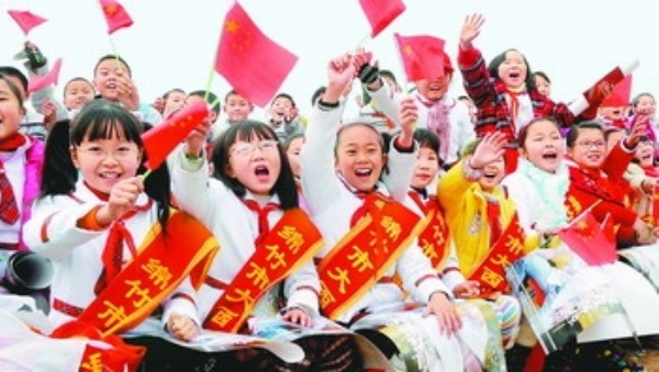 上图 1月15日,地震灾区四川省绵竹市的孩子们在观看中国文联“送欢乐,下基层”演出。灾区群众在冬日里感受着暖意。新华社记者 陈 燮摄