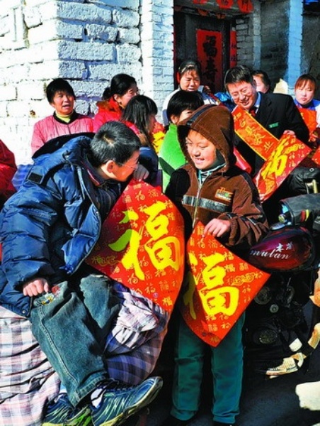 右图 春节前夕,农行山东省桓台县支行组织员工深入农村、集市和城镇居民家中走访慰问,送上春联、红灯笼、“福”字,送上节日祝福。赵新喜摄(中经网供图)