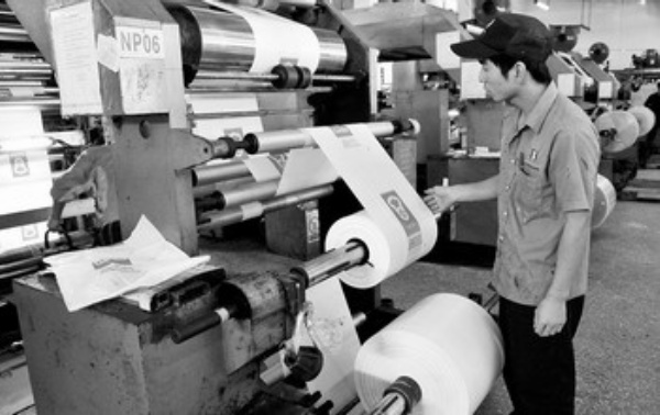 在东莞一家生产塑料制品的台资企业里,工人正在工作。