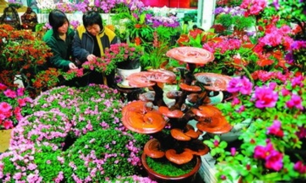 1月16日,市民在青岛南山花鸟交易市场挑选花卉。春节临近,青岛市各花市迎来节前销售旺季,供应市场的盆养鲜花和景观造型植物达千余种,吸引不少市民前来观赏采购。 新华社记者 李紫恒摄