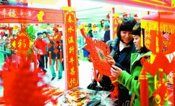 左图 1月18日,四川成都商业市场,顾客正在挑选年货。成都各大超市商场货源充足,购销两旺,处处洋溢着浓浓的节日气氛。本报记者 李景录摄