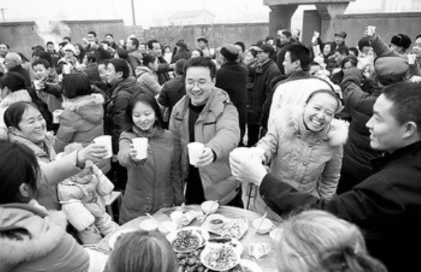 1月20日,四川什邡马祖镇静安村七组龙明义的亲友欢聚一堂,吃“坝坝宴”。 本报记者 李景录 李江天 摄影报道