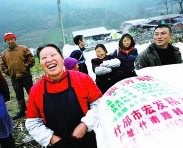 上图 1月20日,四川什邡蓥华镇仁和村村民正在领取政府发放的年货。本报记者 李景录 李江天摄影报道