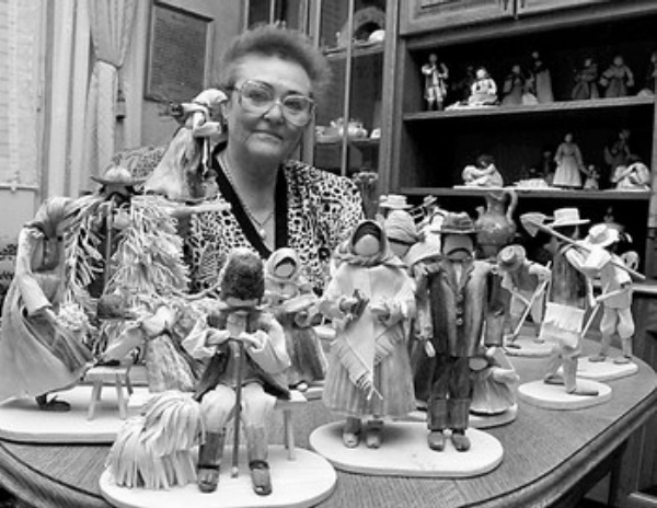 1月19日,在匈牙利的孔海杰什市,乌利奇尼·阿尔帕德妮展示她用玉米皮制作的玩偶。退休幼儿园女教师乌利奇尼·阿尔帕德妮擅长用玉米皮制作玩偶,反映匈牙利农民的生活。她制作的玩偶不染色,都是利用玉米皮的天然色彩。新华社发