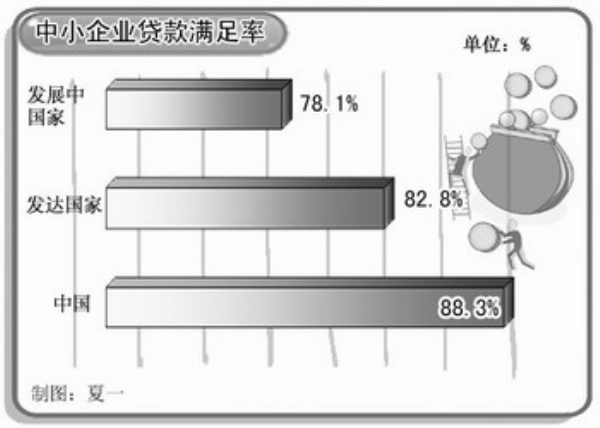 中小企业贷款获得批准的比率比较高,贷款满足率与国际水平基本相当