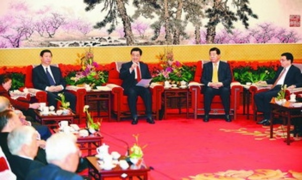 胡锦涛指出,在政治上形成广泛共识,是各民主党派、无党派人士同中国共产党亲密合作的基础。希望同志们把思想建设作为政治交接和自身建设的核心,深入开展多党合作历史和光荣传统教育,加深广大成员和所联系的群众对多党合作历史和优良传统的认识,不断提高思想政治素质,增强接受中国共产党领导的自觉性和坚定性,坚定不移地走中国特色社会主义政治发展道路。