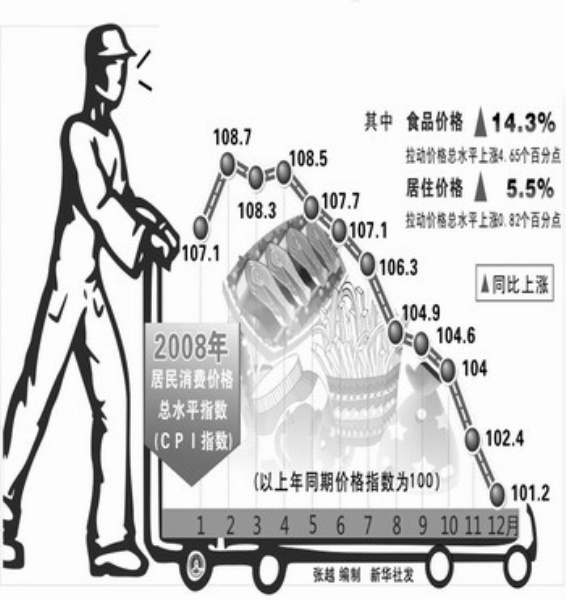 在2008年国民经济运行情况新闻发布会上马建堂介绍说,2008年我国全年居民消费价格涨幅前高后低,下半年逐步回稳。全年居民消费价格上涨5.9%,涨幅比上年提高1.1个百分点。12月单月CPI同比增长1.2%。