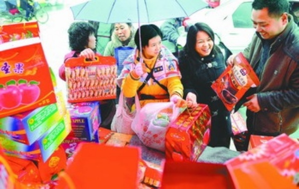 1月27日,四川都江堰蒲阳镇水果市场,顾客正在购买年礼。连日来,这里的春节市场货源充足,购销两旺。 本报记者 李景录 李江天摄影报道