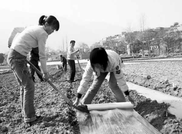 在武都区外纳乡外纳村村口,村民刘建新夫妇正在翻地。“趁着天气好,赶紧翻好地种土豆,到5月份就能收了。”刘建新告诉记者,他家一共有1亩3分地,3分地用来种土豆,还有1亩地种了蒜苗。“这块地能收七八百斤土豆,田里的花椒也能卖些钱,地里的产出就能保证基本生活了。”刘建新的妻子指着地里的几棵花椒树说。