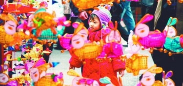 1月26日,一名小朋友被南京夫子庙灯市上五彩缤纷的花灯所吸引。当日,2009年南京夫子庙—秦淮河风光带国际灯会开幕,吸引了许多市民和游人赏灯、买花灯。 新华社发