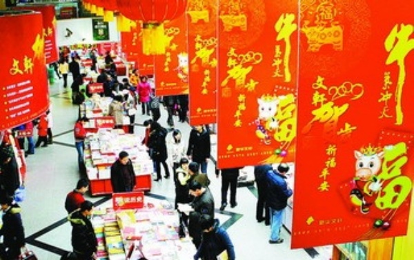 1月31日,四川成都西南书城里读者很多。春节期间逛书市成为成都许多市民的首选,经济、科技、医疗保健、少儿读物等书籍受到青睐。