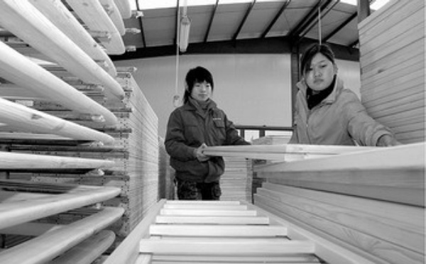 近日,山东沾化清盛家具厂从俄罗斯购进木材,经初加工后,再根据客户需求,研发生产家具成品。由于产销对路,扩大了国际市场竞争优势,产品出口到十几个国家,年出口创汇近千万美元。图为该厂工人装运即将出口英国的家具。 李树贵摄