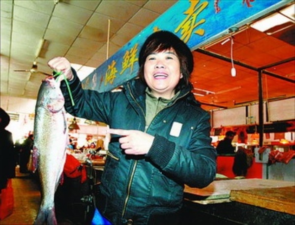 北京宣武区天隆华美综合市场,顾客王玉兰特意来买了一条2斤7两的白鲢鱼,“年夜饭得有鱼,年年有余嘛!”