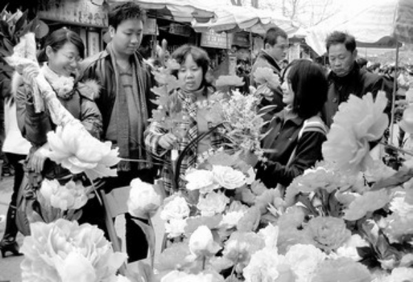 1月29日,几位市民被仿真花所吸引。当日是大年初四,一些南宁市民来到南宁花市,赏花购花。新华社记者 刘广铭摄