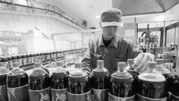 工作人员正在对即将出厂的饮料进行严格的检验。资料图片