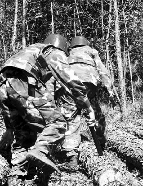 左图 森林部队官兵在原始森林深处追捕盗猎分子。 冯硕摄