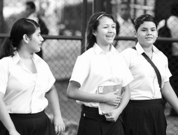 2月3日,在尼加拉瓜首都马那瓜一所学校,几名学生准备去教室上课。当天,尼加拉瓜全国近百万名中小学生迎来新学年开学第一天。尼加拉瓜的中小学生每年可以享受3个月的假期,分别是1月份的新年假,7月份的暑假和9月份的国庆假。 塞萨尔·佩雷斯摄 (新华社发)