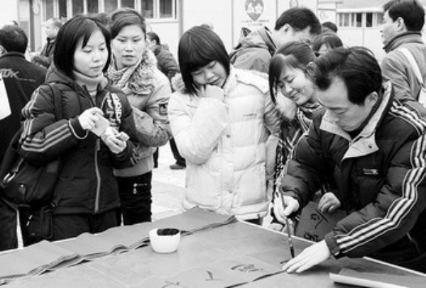1月25日(农历大年三十),记者赖薇(左)在四川省彭州市通济镇思文社区板房安置点采访群众文化活动。