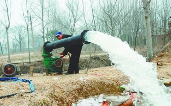 在玉皇村转一圈下来已经是上午10点。苏廷辉来到了郑王村。县财政补贴5600元购买的一台大泵正在昼夜不停地工作。在居王刘自然庄,这台大泵从黄沟里拼命抽水,同时把水排到附近的沟渠中,供远处的麦地灌溉。