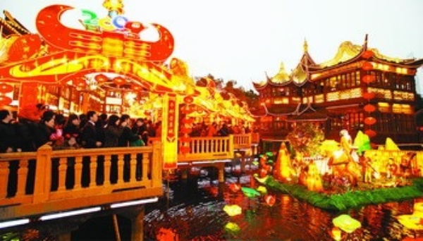 二月七日,市民和游客在灯光绚丽的豫园内参观。当日,为期三天的上海豫园元宵灯会正式亮灯,吸引众多申城市民和游客前来观灯赏景,喜迎佳节。 新华社记者 裴 鑫摄