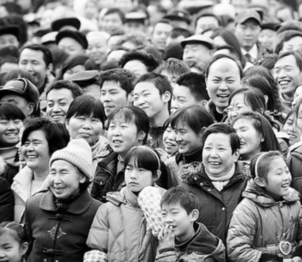 灾区群众在成都庙会上看慰问演出。 本报记者 李景录摄