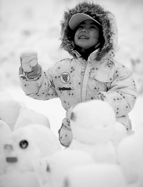 2月8日,在日本北海道札幌市举行的第60届札幌冰雪节上,一名小孩在雪人旁玩耍。作为日本北海道的传统节日,札幌冰雪节是游人们亲近自然的好舞台。冰雪节的组织者特别开辟了供人堆雪人、制作雪雕的场地,让人们充分感受冰雪的魅力。新华社发