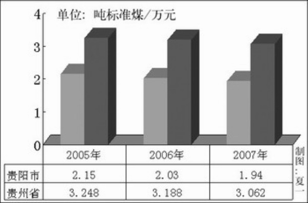 2005年———2007年贵阳市单位GDP能耗逐年降低