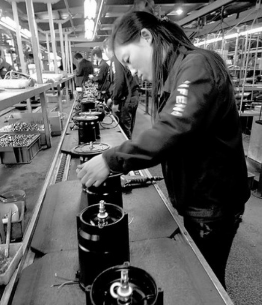 2月9日,浙江奇峰泵业有限公司员工在生产线上工作。