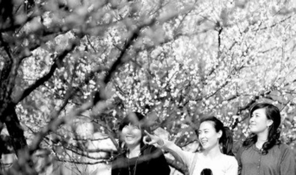 二月十一日,游人在南京梅花山赏梅。近日,随着气温大幅上升,我国四大赏梅胜地之一的南京东郊梅花山的数万株梅花陆续开放,吸引许多市民前来踏青赏梅。新华社记者 孙 参摄