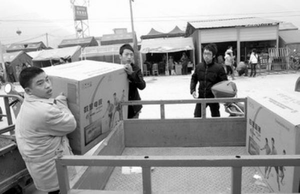 左图 长虹在北川等地震重灾区推广农村个人信贷消费,销售火爆。供图/王军华