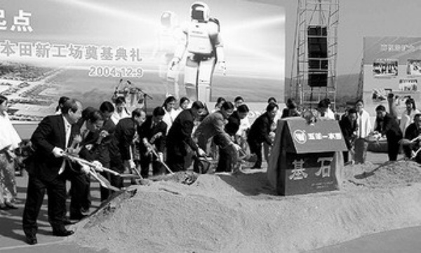 ④2008年11月,本田汽车(中国)第10万辆爵士轿车在广州新沙港启程出口欧洲。 本报记者 王 晋摄