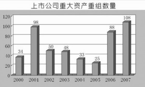 此外,上市公司及其控股股东在经济当中的比重和影响力很大,具有并购重组和产业升级的先天条件。监管层明确表示,支持和鼓励股东将优质资产与核心业务注入上市公司。2008年有171家公司通过并购重组向上市公司注入优良资产3272亿元,而2007年仅为739亿元,同比增长343%。过去10年,有近500家上市公司通过并购重组实现了行业整合、整体上市和增强控制权等,实现了做优做强的目的。