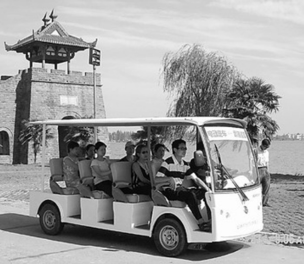 图1:混合动力公交车穿梭在武汉城区。图2 :电动车辆股份公司的工人们正在装配纯电动小汽车。图3:搭载着游客的纯电动场地车行驶在武汉东湖磨山风景区。本报记者 郑明桥摄
