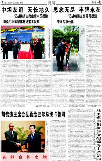 马里官方报纸《发展报》12日在头版头条以《胡锦涛主席,欢迎您!》为题报道了胡锦涛即将访问马里的消息,并配以胡锦涛主席的大幅彩色图片。该报13日详细报道了胡锦涛在马里的访问活动,并援引胡锦涛的话报道说,明年将迎来中马建交50周年,标志着两国关系进入新的发展时期。
