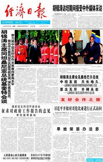 胡锦涛访坦期间接受中外媒体采访