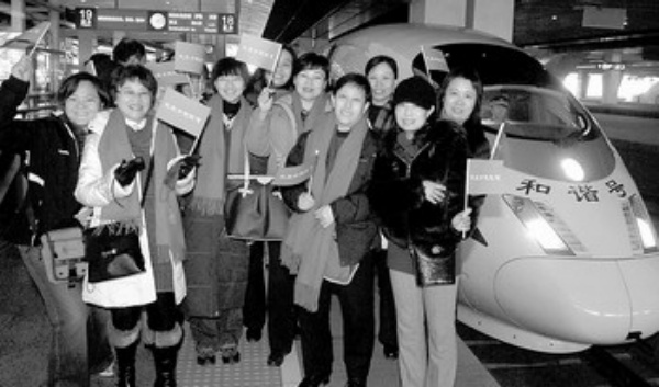 记者从铁路部门了解到,除夕过后平均每天有4万多人次乘京津城际列车异地过年、旅游消费,成为了一种新的消费时尚。工作人员告诉记者:“因为预计到了春节期间乘坐京津城际列车往来两地的旅客将不在少数,我们又加开了15对列车,使得黄金周期间每天有74对列车往来于两城之间。即使这样,高铁列车还是趟趟爆满。”
