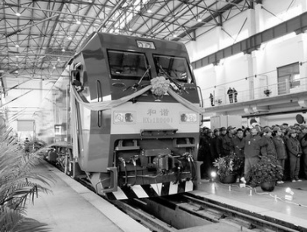 一个月前,在位于湖南株洲的南车株机公司,世界最大功率六轴9600千瓦交流传动电力机车成功下线,成为我国重大技术装备自主创新的又一里程碑。如今,南车人又启动了7200千瓦六轴机车的研制工作。图为中国南车株洲电力机车有限公司总功率达9600千瓦的六轴交流传动电力机车竣工仪式现场。新华社颜常青摄