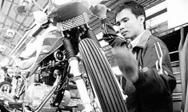 上图 广州增城市奔马实业有限公司的车间内,工人正在组装“三铃”牌摩托车。增城是广州、东莞、深圳等珠三角城市群和广深经济带的重要节点。本报记者 赵 晶摄