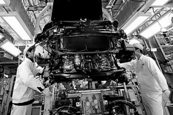 今年1月,我国汽车生产65.88万辆,环比增长5.07%。图为广本汽车公司的工人在流水线上安装发动机。新华社记者 周文杰摄