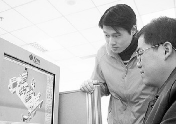 武昌造船厂的技术人员通过电脑在对船舶进行三维设计。 龙琼子\供图