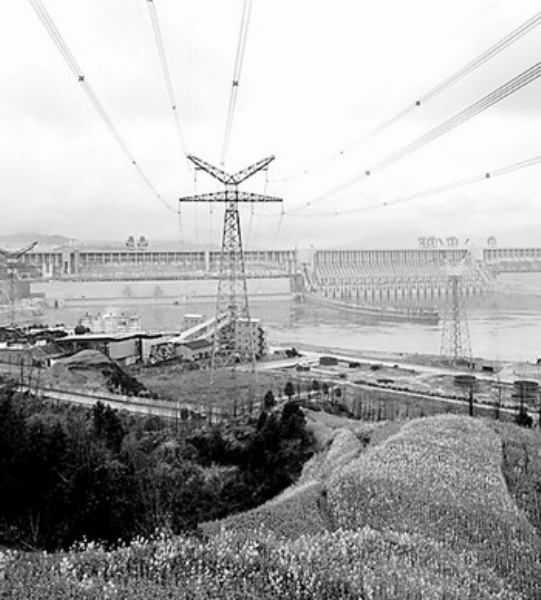 三峡大坝右岸输电线路(2月19日摄)。经过广大建设者坚持不懈的努力,三峡工程建设取得了重大进展,三峡枢纽主体工程建设任务提前一年完成。郑家裕摄(新华社发)