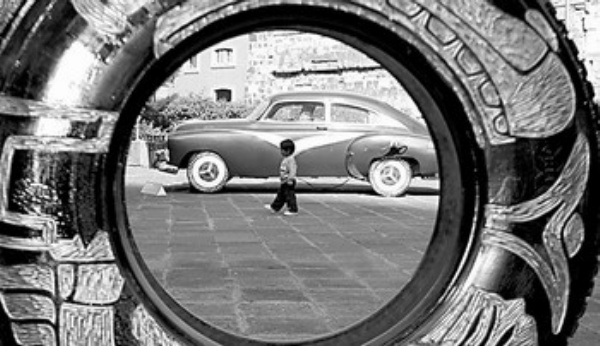2月16日,在墨西哥首都墨西哥城,一名小孩从墨西哥艺术家巴士巴罗梅罗的一个轮子艺术作品前经过。巴士巴罗梅罗艺术作品巡展“走近轮子”于2月15日至4月23日在墨西哥城的历史中心举行,吸引众多市民和游客前来参观。 新华社发