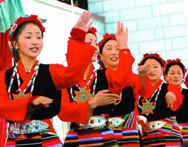 上图 2月20日,西藏自治区藏剧团的演员在拉萨纳金乡表演。 当日,西藏自治区藏剧团的演员来到拉萨纳金乡,为当地的藏族群众义务演出藏戏、小品、歌曲,喜迎藏历新年的到来。 新华社记者 觉 果摄
