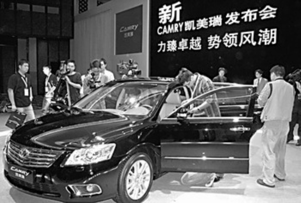 2月18日,广汽丰田新凯美瑞宣布上市并开始接受预订,9个型号产品的价格为18.98万元~27.38万元。新凯美瑞在外形革新的同时,增加了多项新配置。 本报记者 张 雪摄