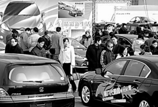 2月21日,青岛市春季车展在一家大型超市户外广场举行。130余款车型供市民挑选,经销商通过现场团购、零首付等优惠条件吸引客户。 新华社记者 李紫恒摄