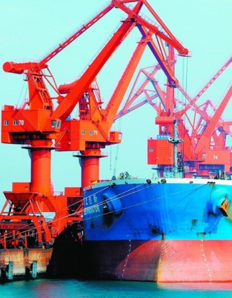 2月27日,一艘货轮正在青岛港20万吨矿石专用码头卸货。日前,青岛、日照、烟台3个亿吨大港在青岛签署战略联盟框架协议,决定开展多层面的交流合作,优势互补提高整体竞争力,共同打造东北亚国际航运中心。 新华社记者 李紫恒摄
