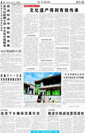 2008年9月25日发表的《西藏文化的保护与发展》白皮书明确指出,中国政府高度重视保护和发展西藏的传统文化,将继续投入巨大的人力物力财力,运用法律、经济和行政等多种手段,使西藏优秀传统文化在有效保护的基础上得到了继承、弘扬和发展。