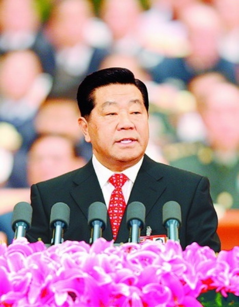 贾庆林代表政协第十一届全国委员会常务委员会,向大会报告工作。