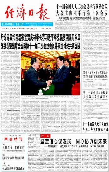 十一届全国人大二次会议举行预备会议大会主席团举行第一次会议