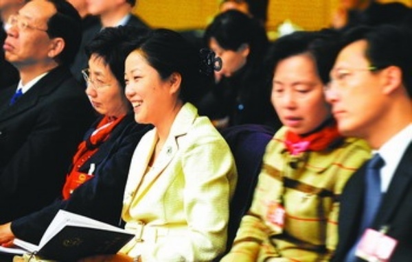 下图 3月7日下午,在人大上海代表团举行的全体会议上,农民工代表朱雪芹(中)建议建立农民工教育保障制度,提升进城务工农民工就业空间。本报记者 李景录摄